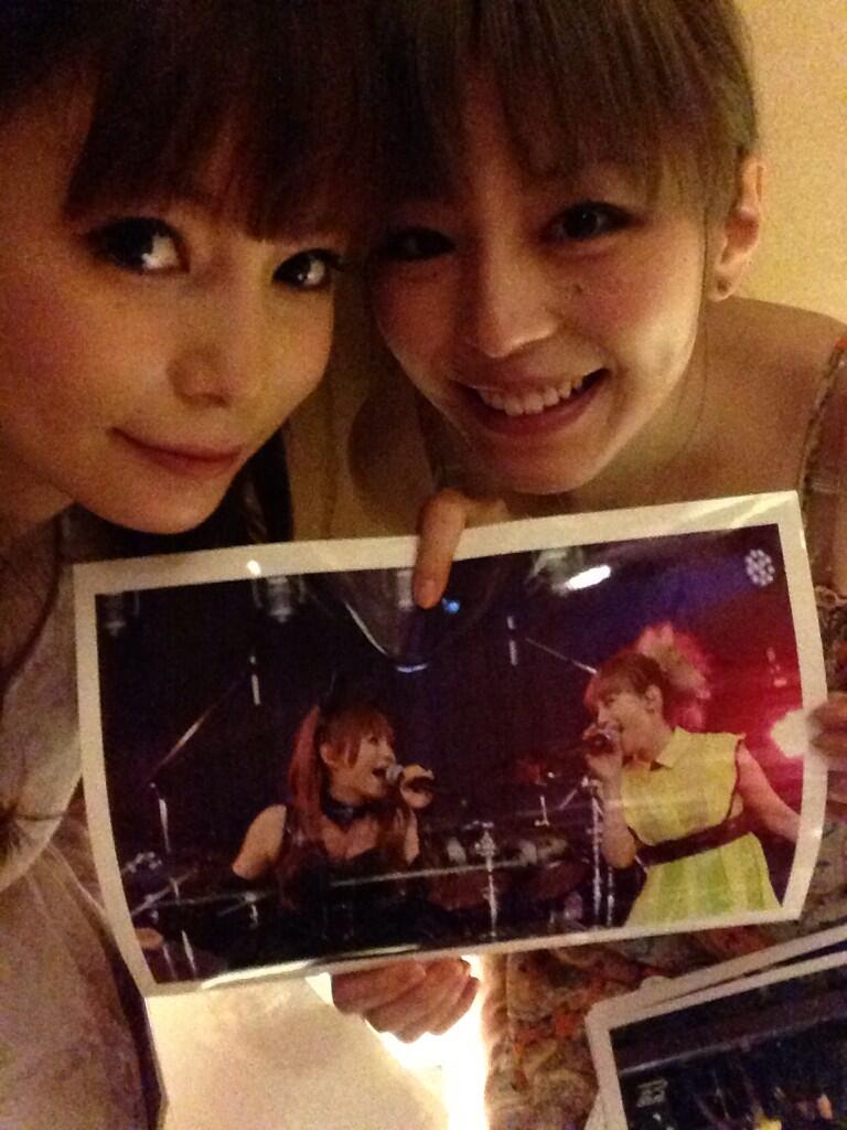También Shoko puso una foto con Aya Hirano. ¡Las dos son muy amigas! Están posando con una fotografía de cuando estuvieron juntas de el evento de NAON no YAON.